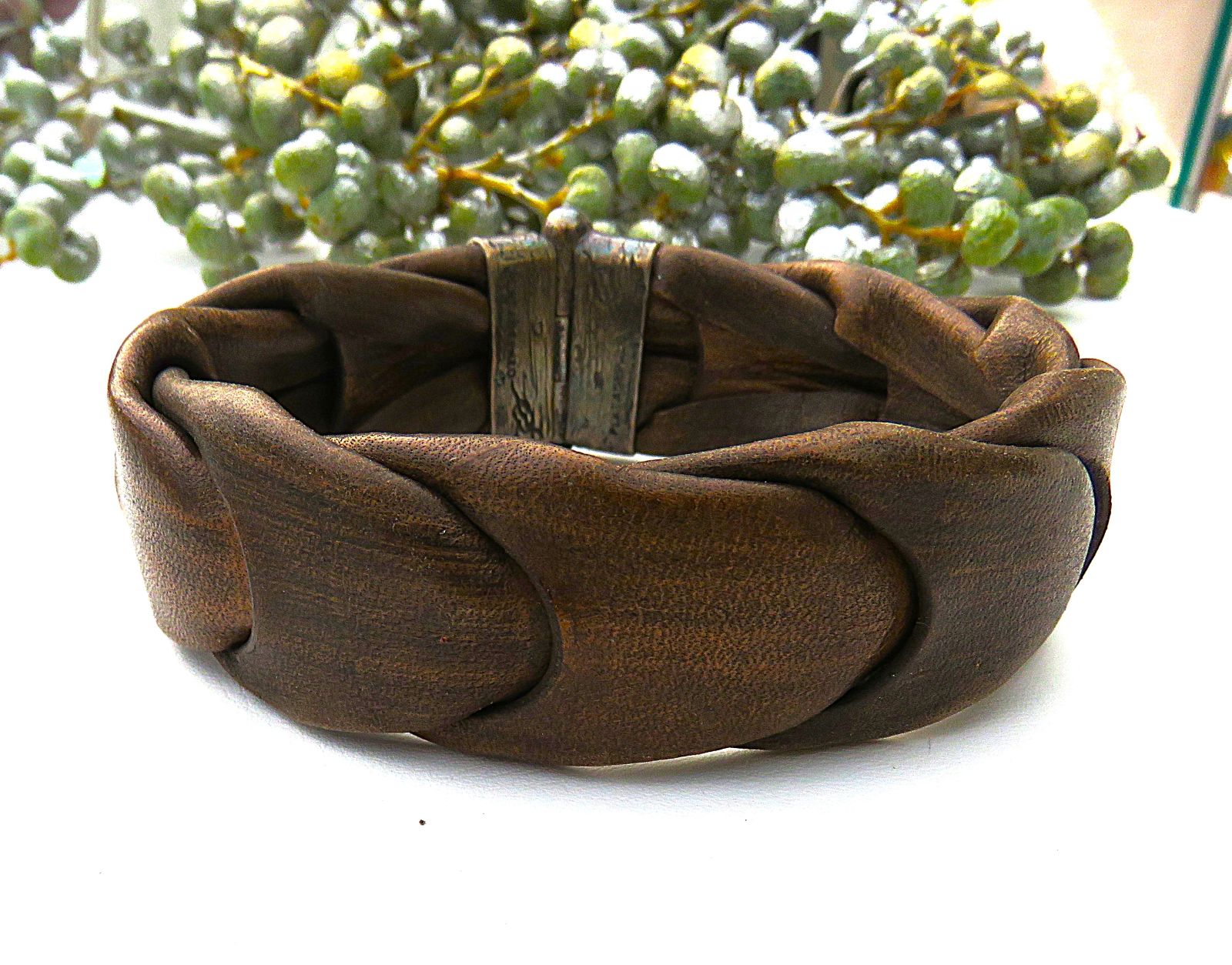 25 mm breites Leder Armband für Herren, attraktiv geflochtenes Rindleder. Das Armband ist ca. 5 mm dick und hat eine Länge von 23 cm. 2 Dieser Armbänder stehen zum Verkauf. Diese Modell der spanischen Firma Platadipalo punktet durch eigenwilliges Design und hochwertigste Verarbeitung feinster Materialien.