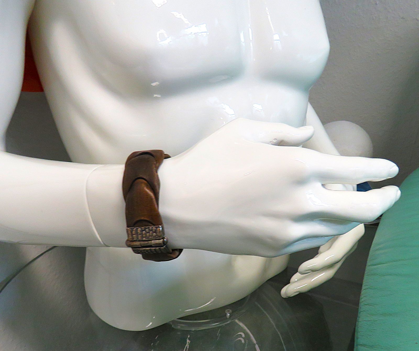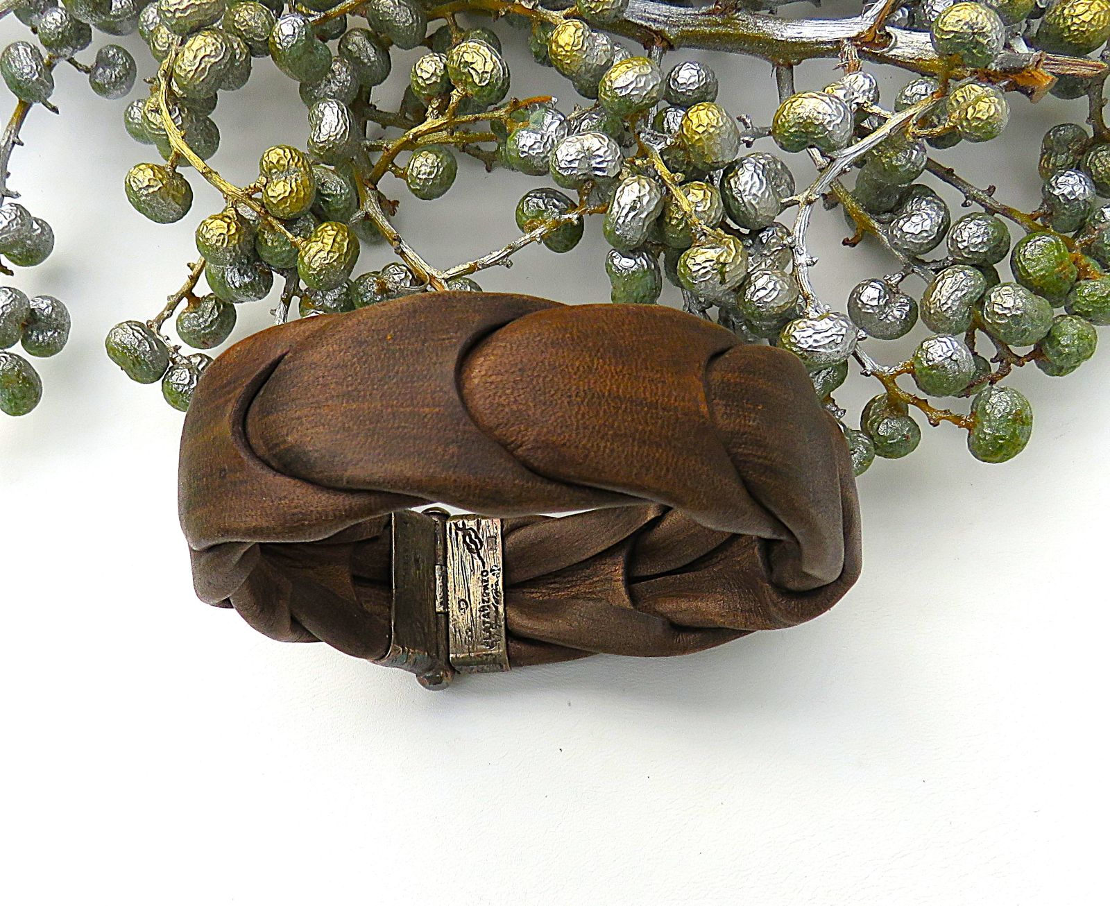 Die rustikale Steckschließe rundet den exklusiven Gesamteindruck die Herren Armschmuckes ausdrucksvoll ab.
