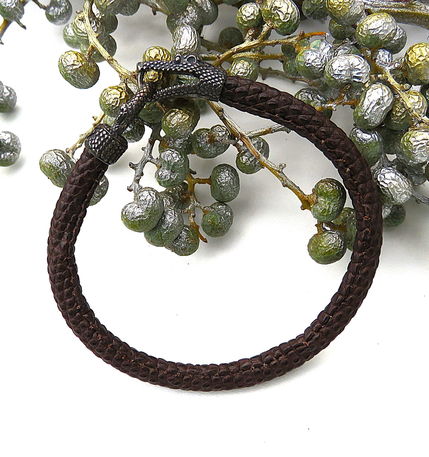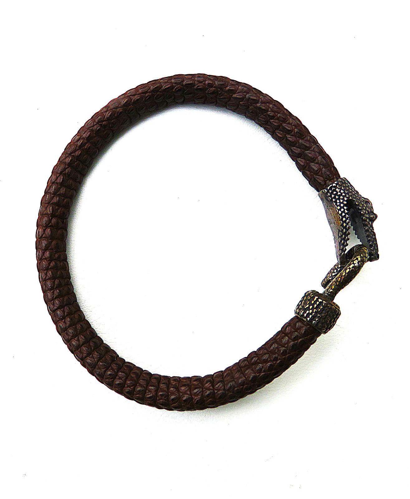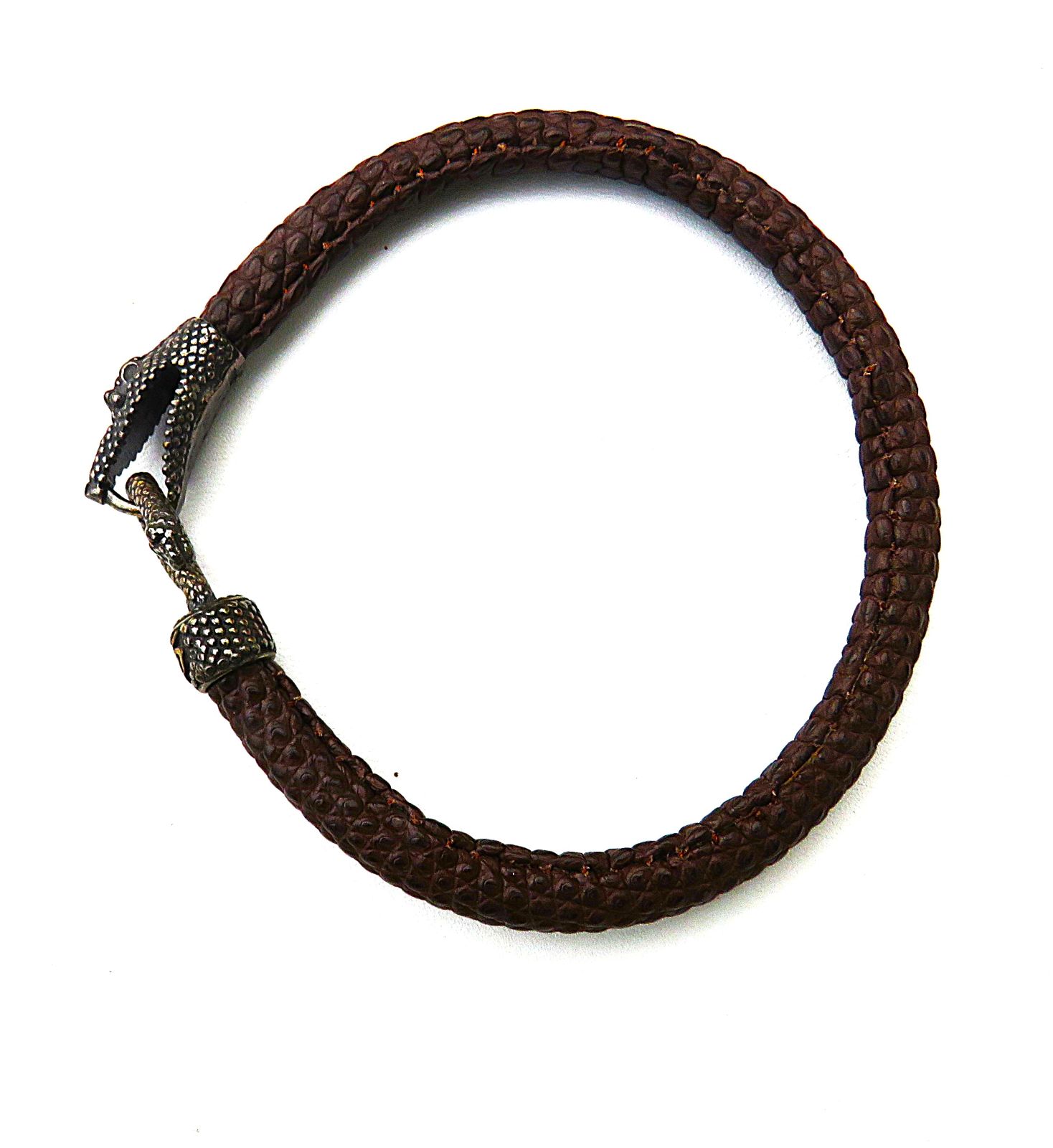 Herren Leder Armreif geprägtes Rindleder mit Echsenkopf Hakenschließe Platadipalo SONDERPREIS 5665