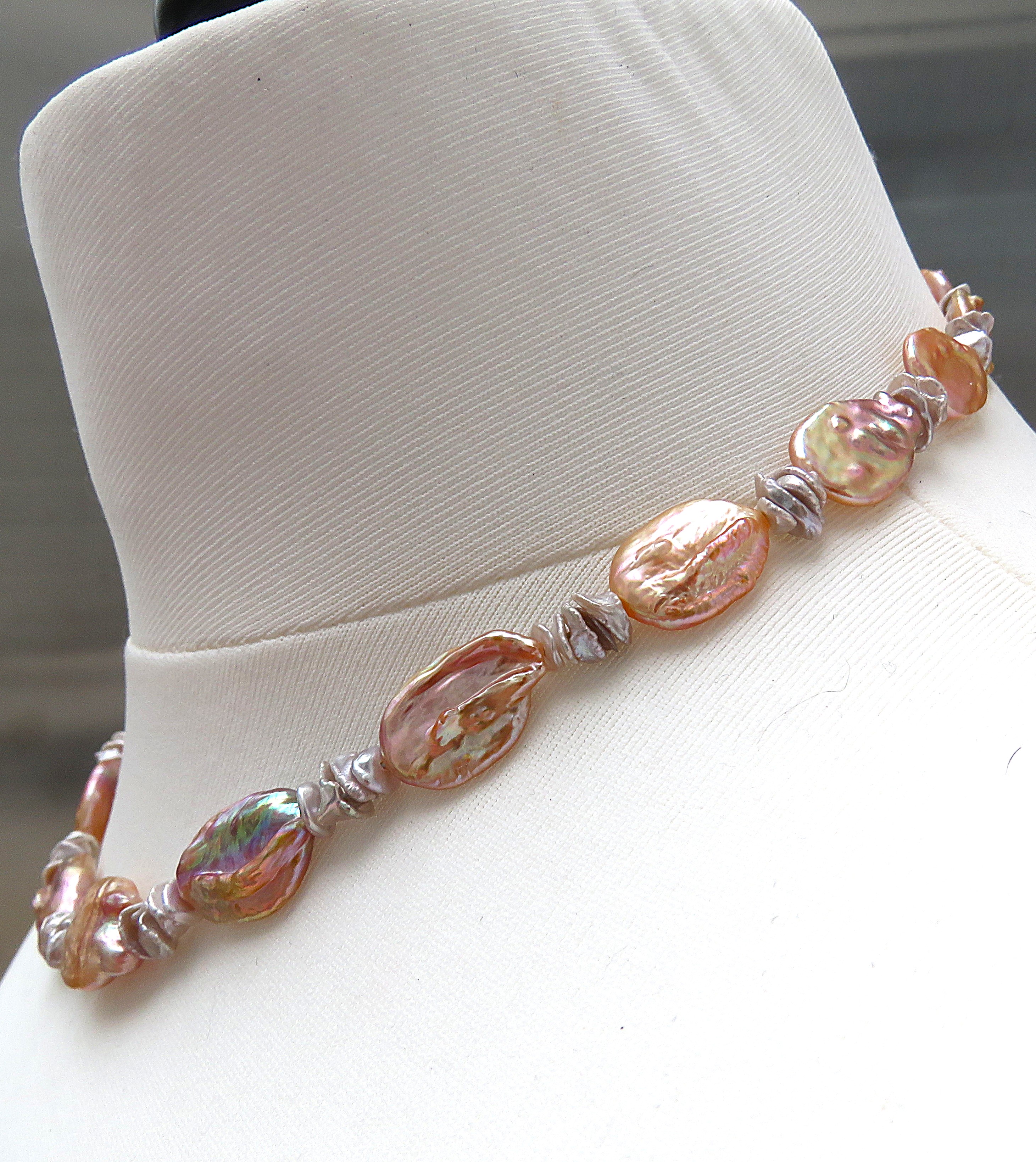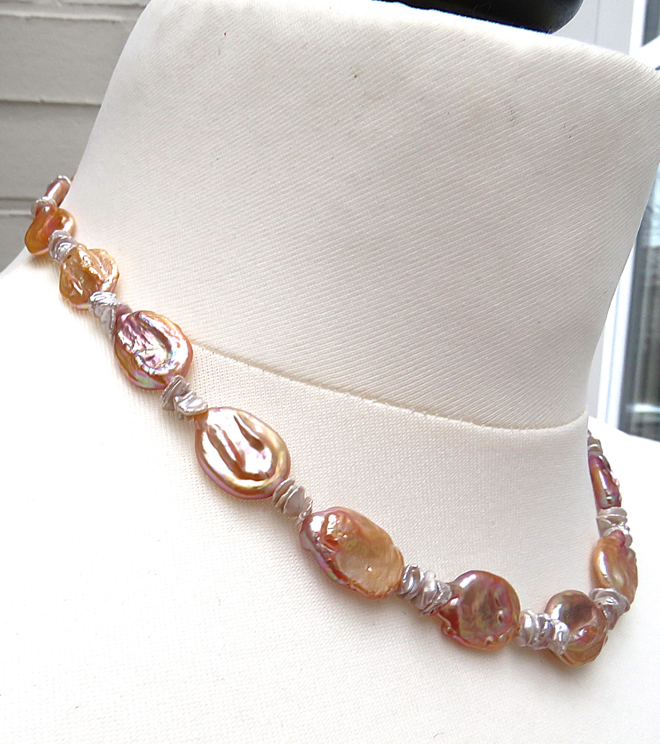 Keshi Coin Perlen Kette Süßwasser Perlen Unikat Kette naturfarben handmade 5712
