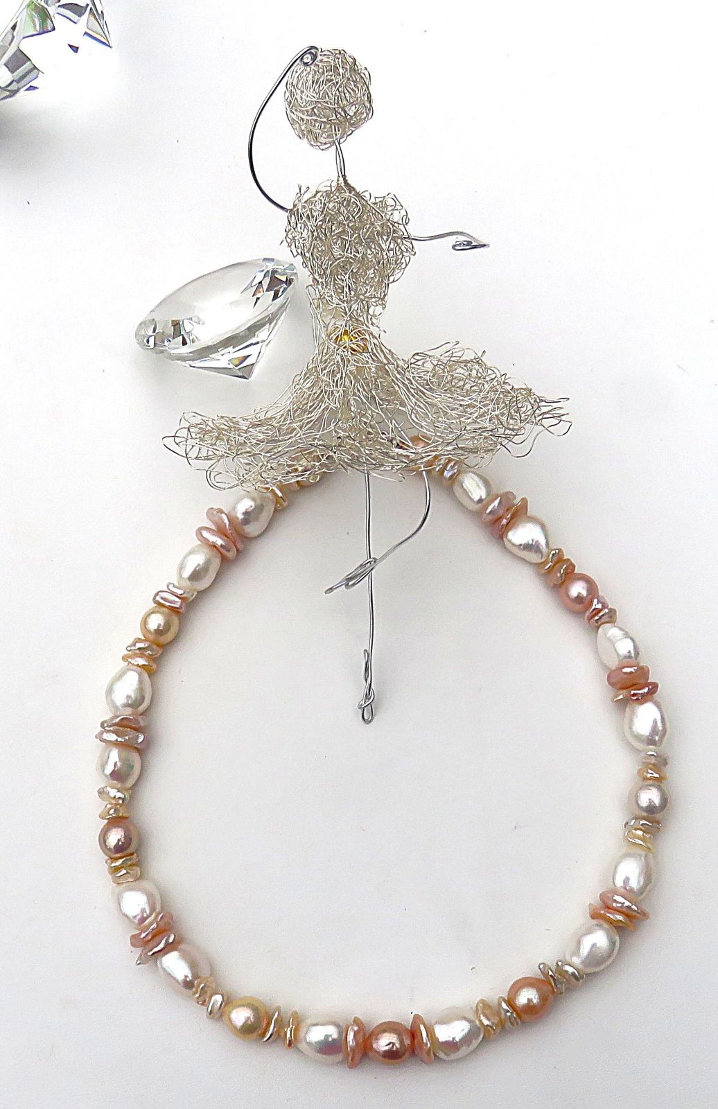 Gearbeitet habe ich das 45,5 cm lange Perlen Collier auf kunststoffummantelten Juwelierdraht. Geschlossen wird es mit einem 10 mm Magnetschließe aus rhodiniertem Sterlingsilber.