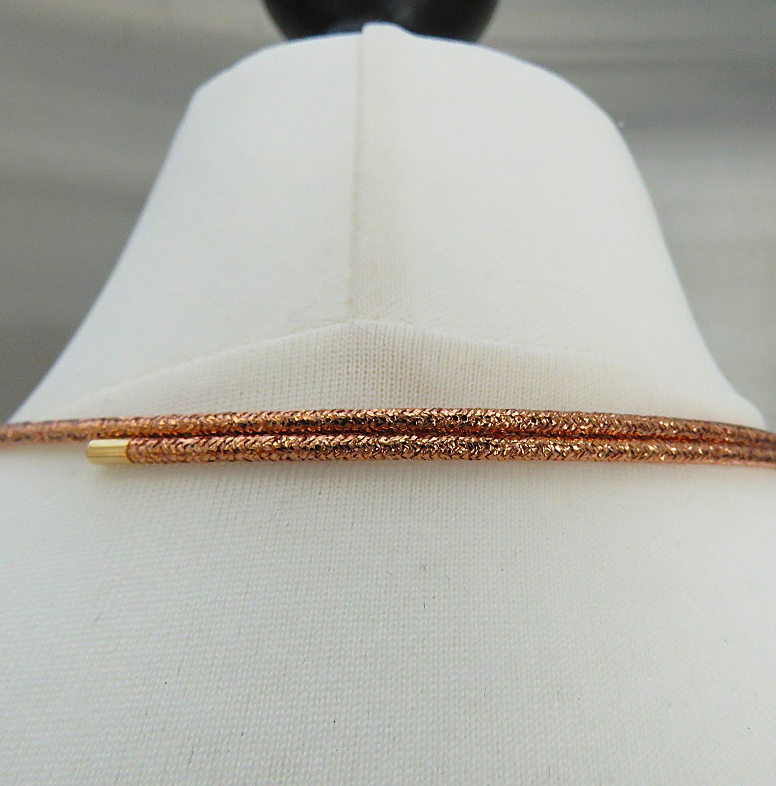 Der magnetische Halsreif mit der Modell Nr. 5701 glänzt in zartem Roségold. Die Reifenden sind mit vergoldeten Stahlkappen versehen: