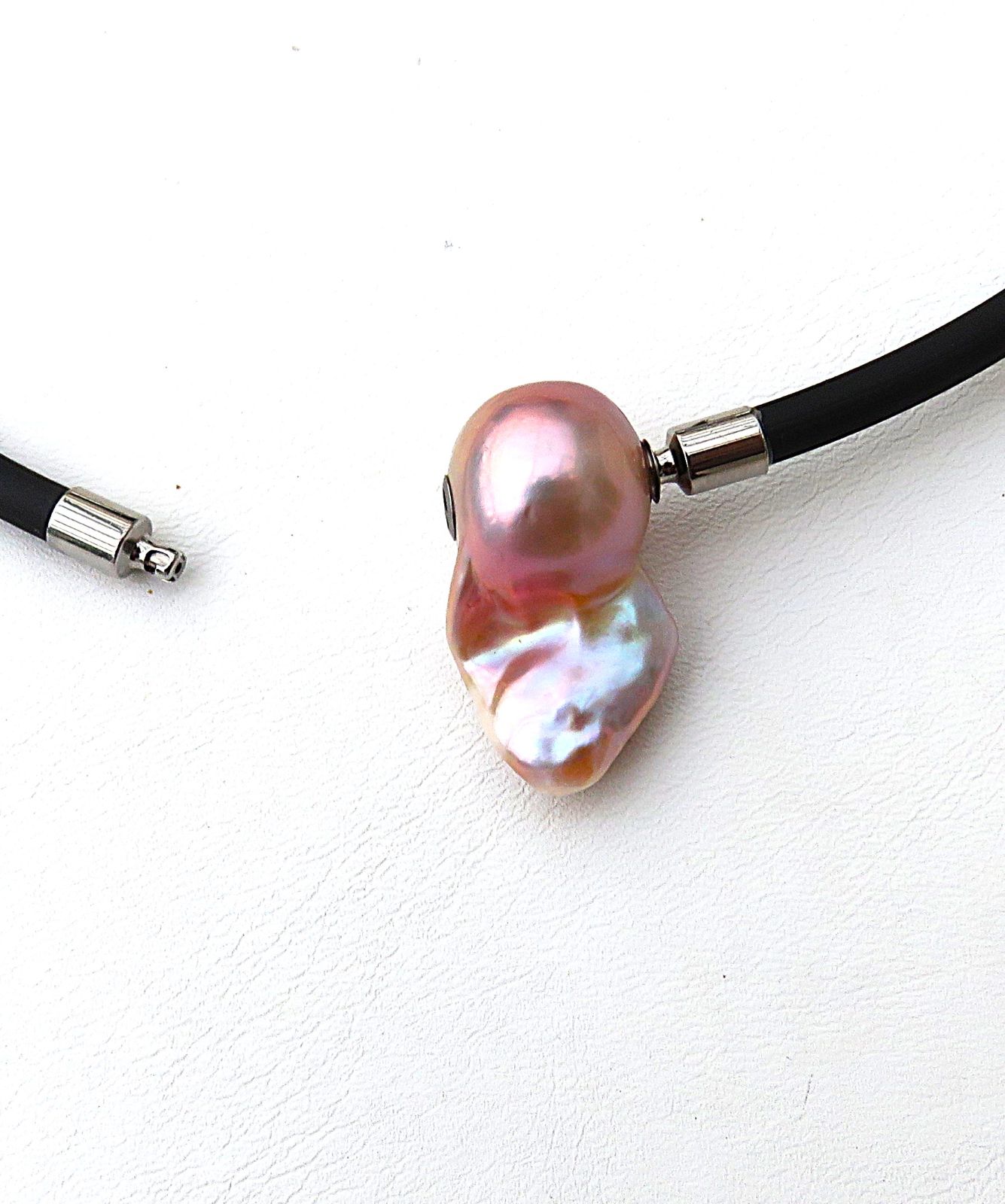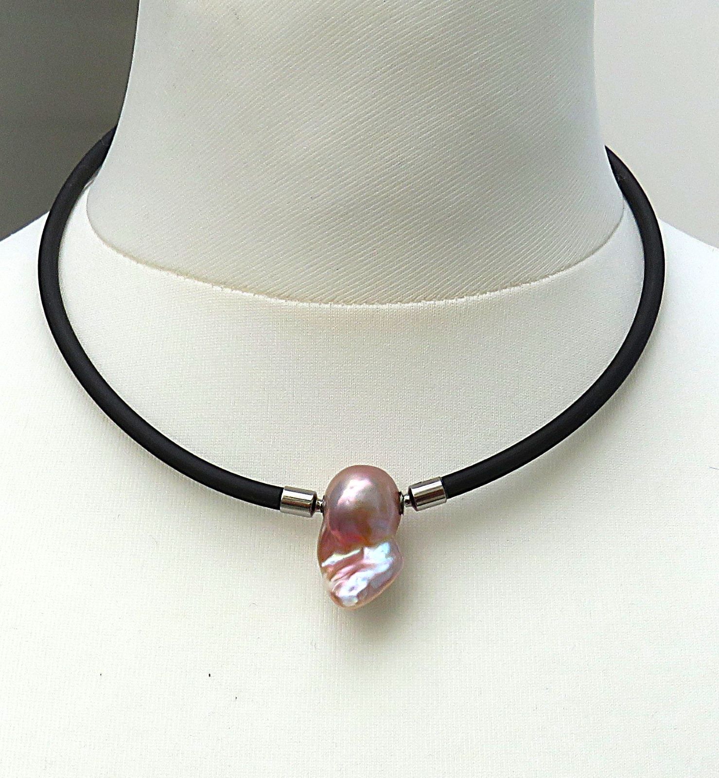 Das mit abgebildete Kautschuk Collier ist NICHT Bestandteil dieses Angebotes. Lediglich die Perlen Wechselschließe steht zum Verkauf. Preis für den 4 mm starken Kautschuk Halsreif, gefertigt in Ihrer persönlichen Wunschlänge - auf Anfrage.
