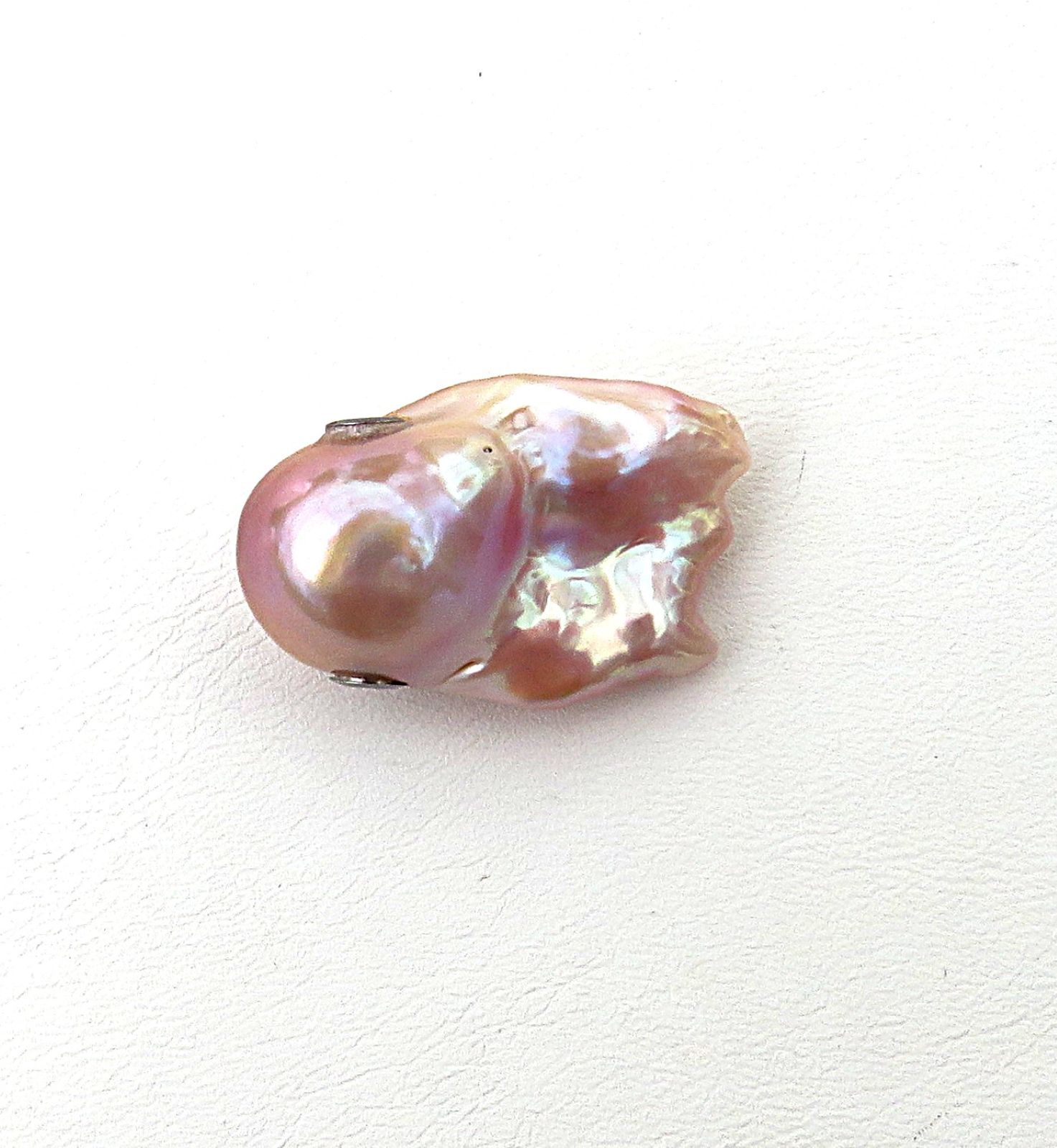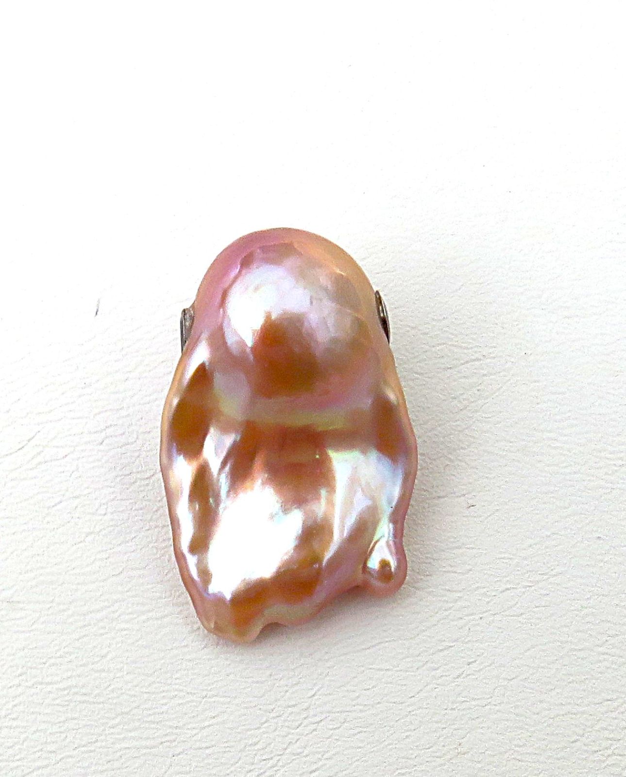 Die Ming Perle misst ca. 29,4x18,5x13,6 mm (LxBxH) bei einem Gewicht von 35,1 Karat. Es ist ein barocker Tropfen. Die natürlichen Farben gehen von zartem Flieder über Rosé über Lavendel, Karamell bis hin zu Goldtönen, die sich je nach Lichtverhältnissen über die Perle zu ergießen scheinen - unglaublich spannend. Je nach Lichteinfallswinkel intensivieren sich die unterschiedlichen Farben. Dies habe ich auch bei meinen Fotos versucht einzufangen. Die Perle ist von sehr sehr guter Qualität bei ausgezeichnetem Lüster. Diese Perle ist von so guter Qualtität, dass sie beidseitig getragen werden kann. Schauen Sie sich bite die Detailfotos an.