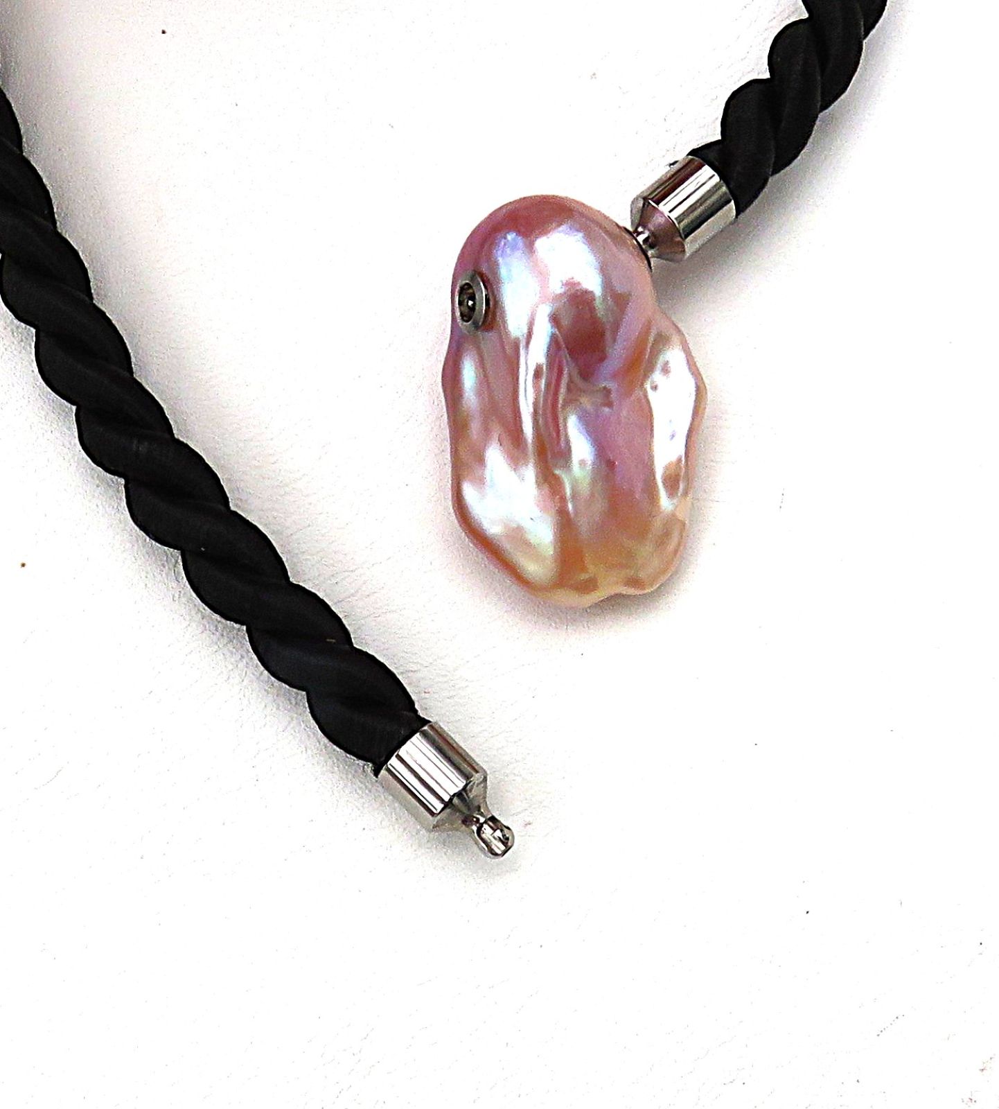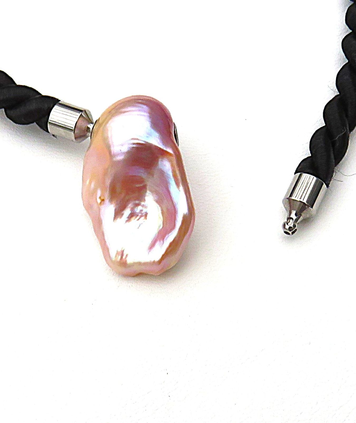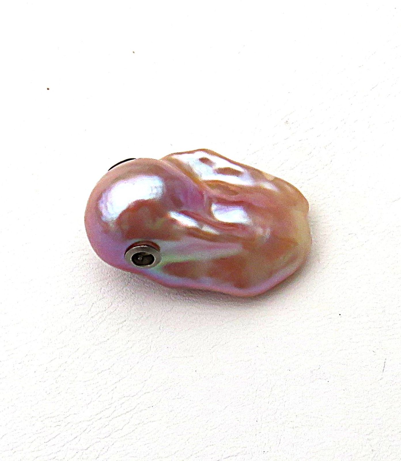 Diese traumhaft schöne, vielfarbige Ming Perle habe ich mittels Edelstahl Schließmechaniken zur Wechselschließe gearbeitet. Sie ist von exorbitant guter Qualität. Die Nacre ist extrem dick. Wie ich beim Bohren feststellen konnte, misst sie an die 2 mm. Das ist enorm und sorgt dann auch für einen umwerfend brillanten Lüster.