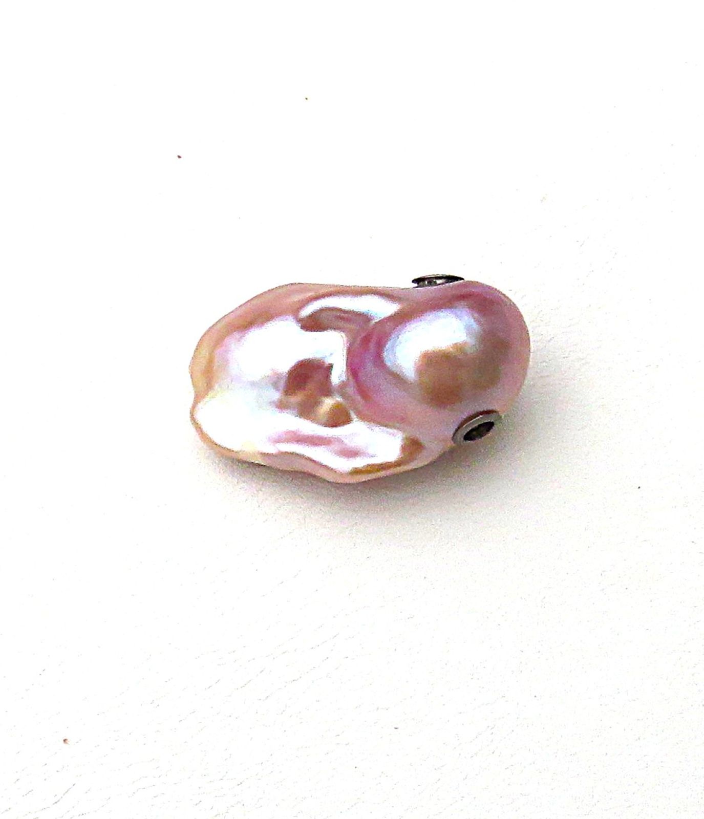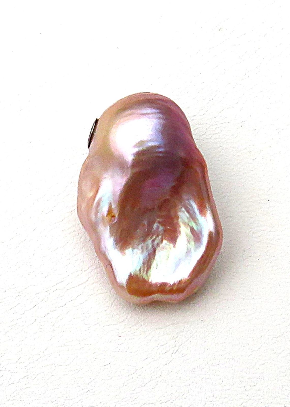 Die Ming Perle misst ca. 29x18,5x14,3 mm (LxBxH) bei einem Gewicht von 37,5 Karat. Es ist ein barocker Tropfen. Die natürlichen Farben gehen von zartem Flieder über Rosé über Lavendel, Karamell bis hin zu Goldtönen, die sich je nach Lichtverhältnissen über die Perle zu ergießen scheinen - unglaublich spannend. Je nach Lichteinfallswinkel intensivieren sich die unterschiedlichen Farben. Dies habe ich auch bei meinen Fotos versucht einzufangen. Die Perle ist von sehr sehr guter Qualität bei ausgezeichnetem Lüster. Diese Perle ist von so guter Qualtität, dass sie beidseitig getragen werden kann. Schauen Sie sich bite die Detailfotos an.