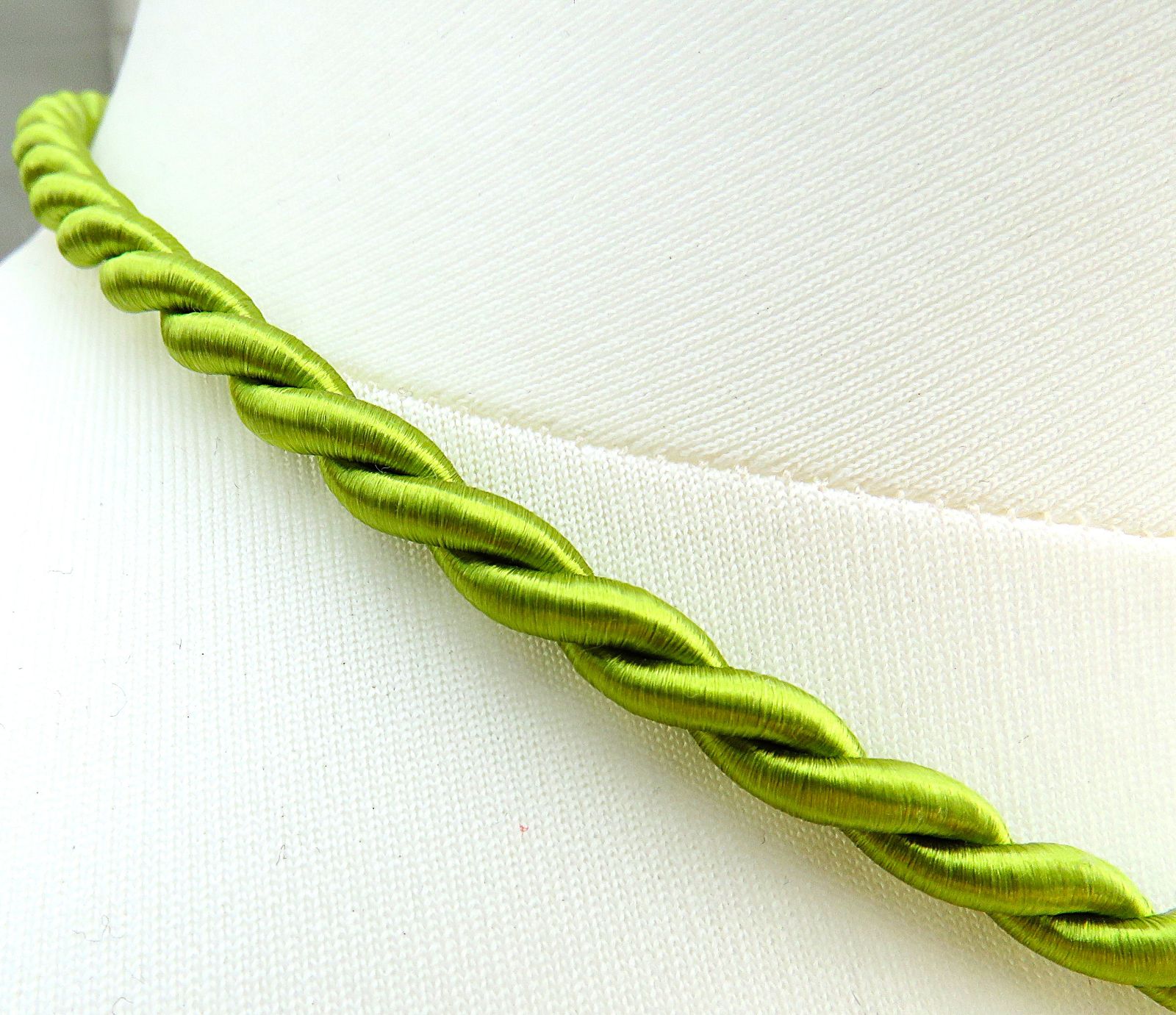 Sollte Ihnen die von mir gewählte Farbkombination mit dem kiwigrünen Kordelcollier nicht gefallen, haben Sie die Wahl zwischen 8 weiteren Farben, die auf dem letzten Foto dargestellt sind. Ich fertige Ihnen dann ein Collier Ihrer Wahl ohne Aufpreis an. Nennen Sie mir bei Kauf dann bitte Ihre Wunschfarbe.