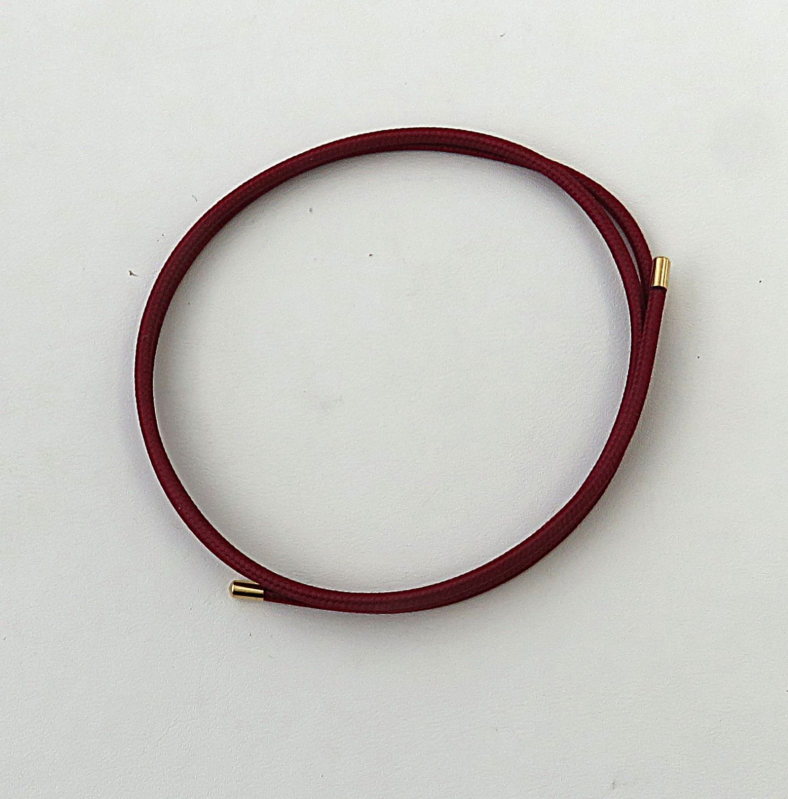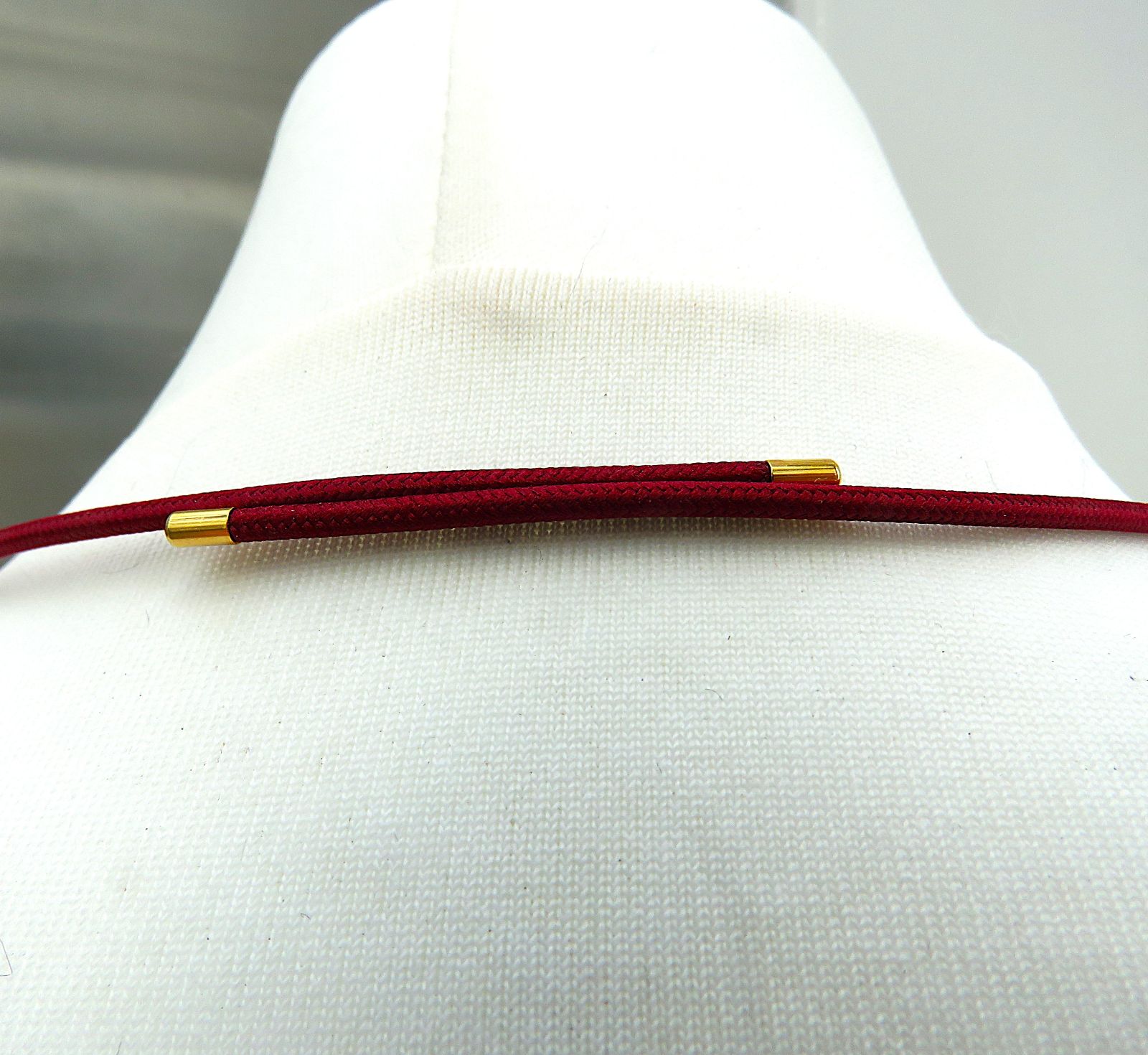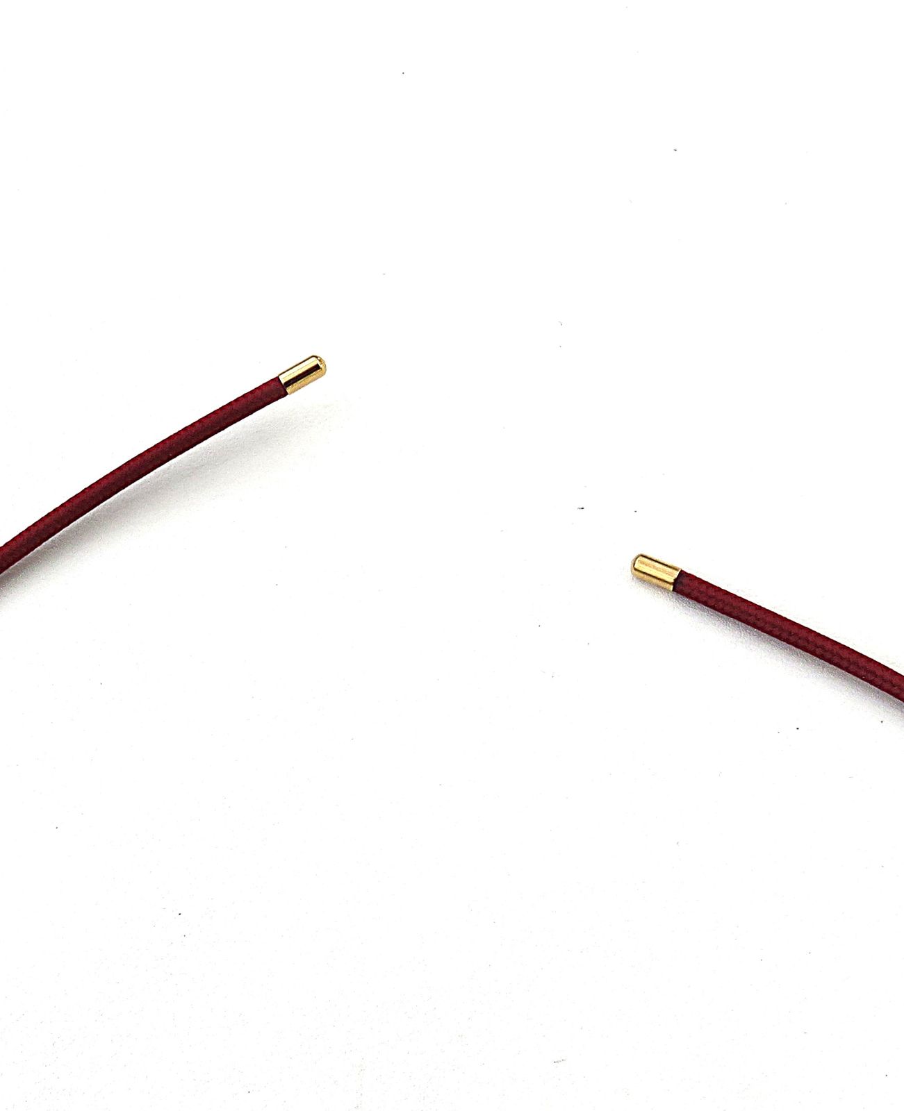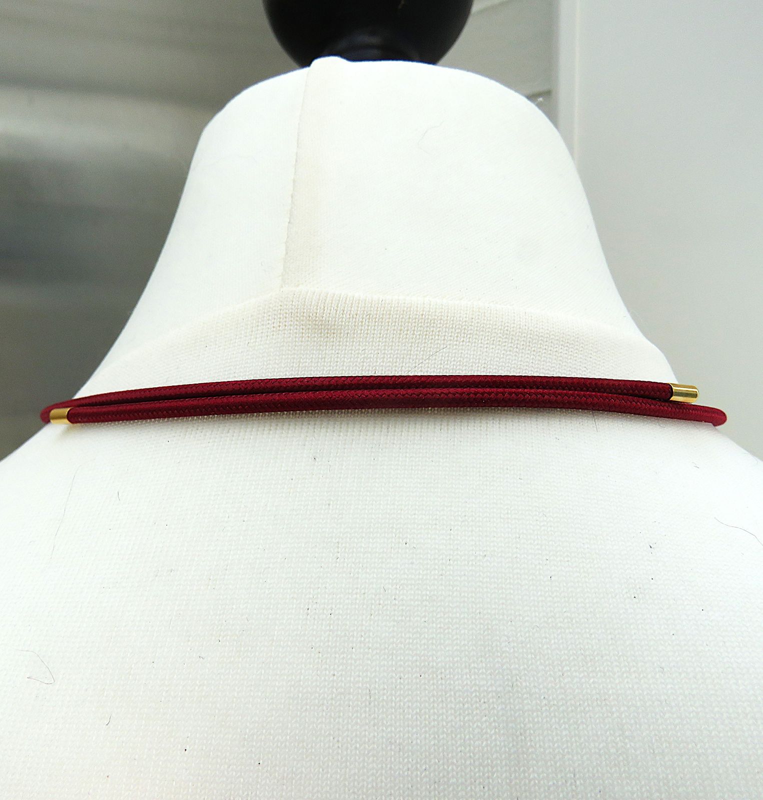 Der magnetische Halsreif mit der Modell Nr. 5693 glänzt in sanftem Bordeaux. Die Reifenden sind mit vergoldeten Stahlkappen versehen: