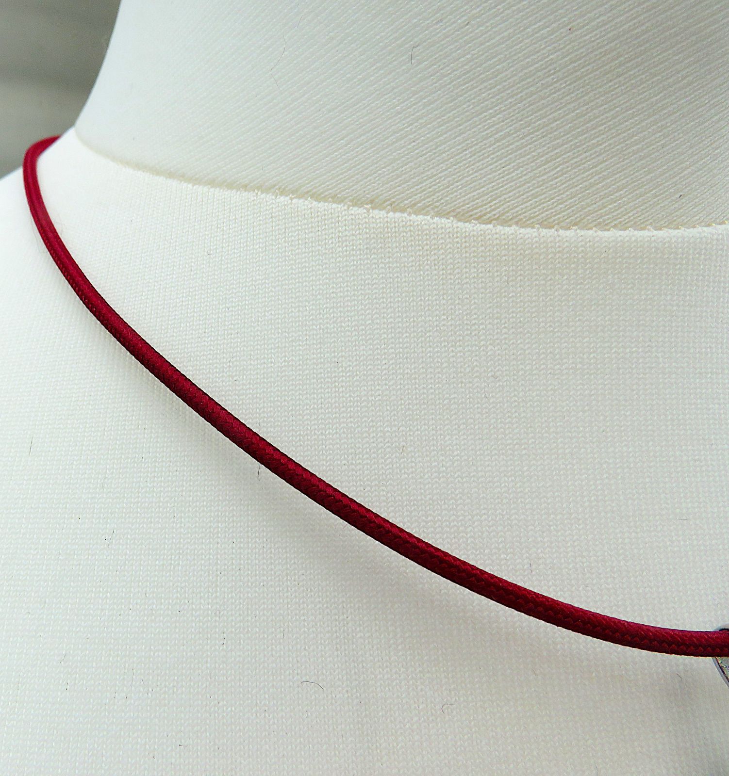 Voll ausgestreckt ist er 51 cm lang und Sie allein bestimmen die jeweils gewünschte Kettenlänge eim Schließen des Reifs. Der Halsreif hat eine Stärke von 2 mm. Er ist so schön, dass man ihn auch ganz pur ohne Anhänger tragen kann.
