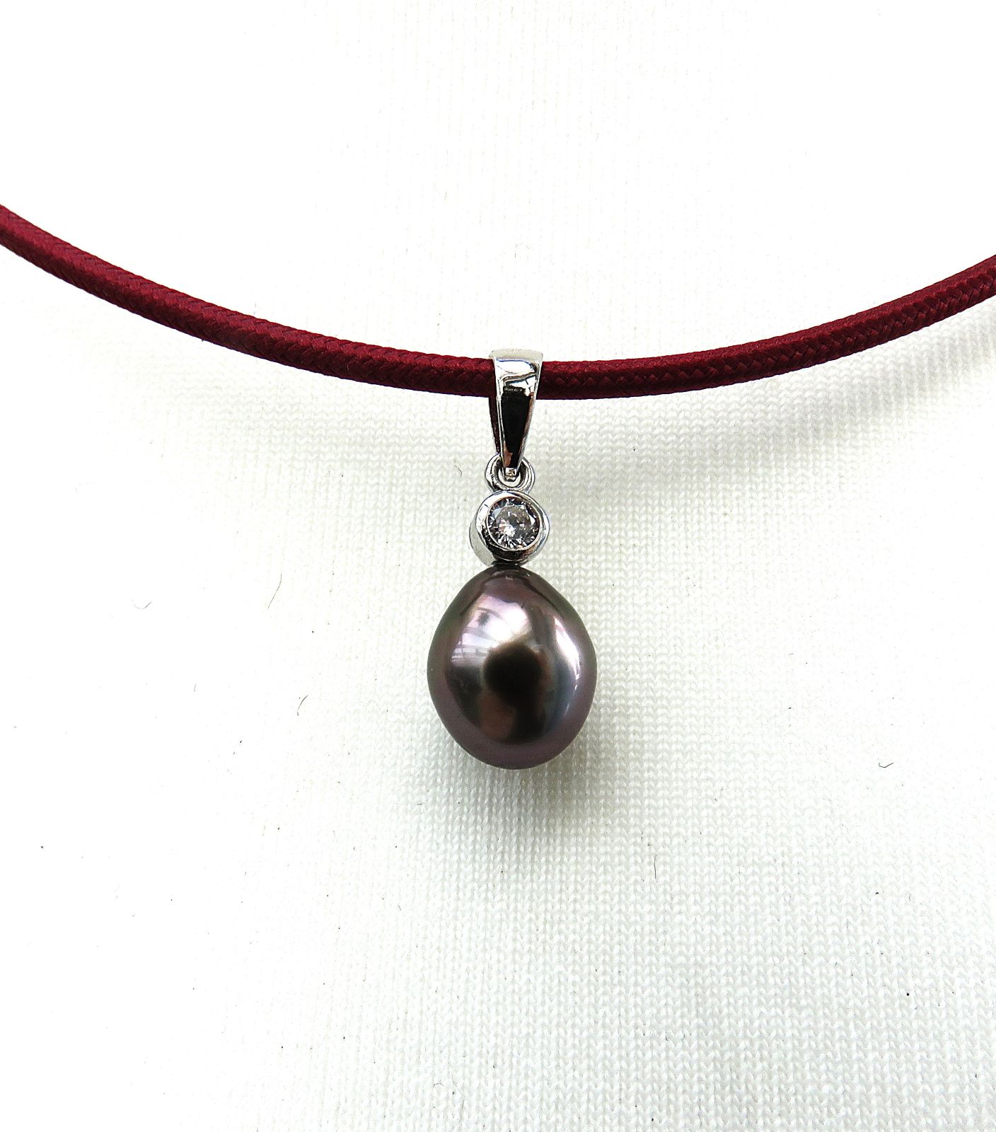 Farblich passend dazu habe ich eine exzellente Tahiti Tropfen Perle ausgesucht. Beide Stücke harmonieren perfekt miteinander.